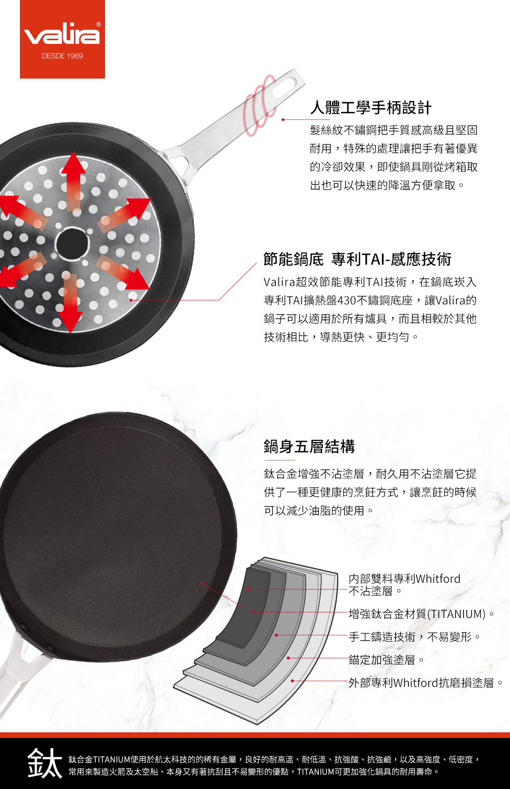 ◆ 美國專利技術,內外多層鈦合金增強不沾塗層