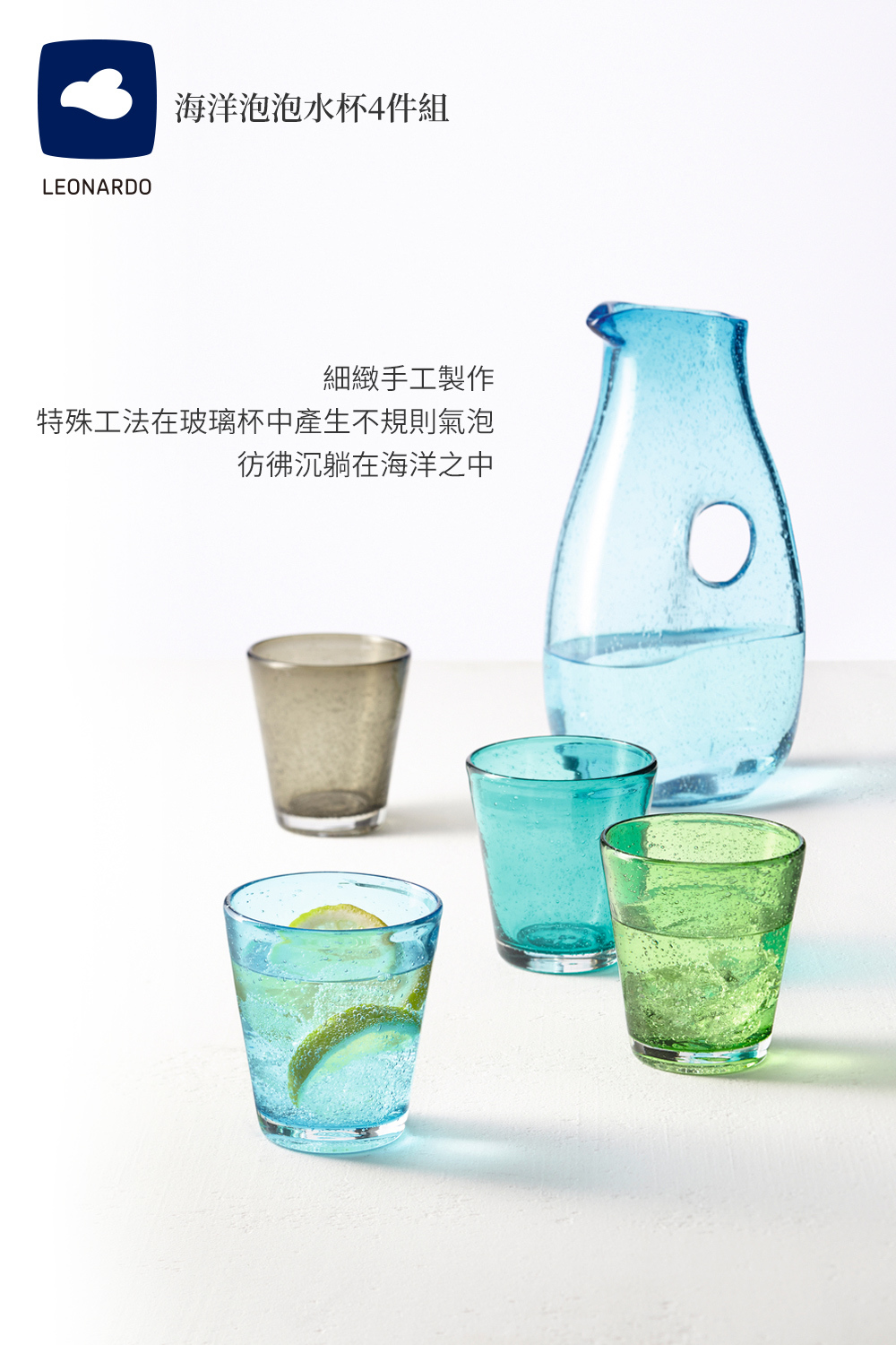 ◆ 特殊工法在玻璃杯中產生不規則氣泡,徜徉在海洋之中