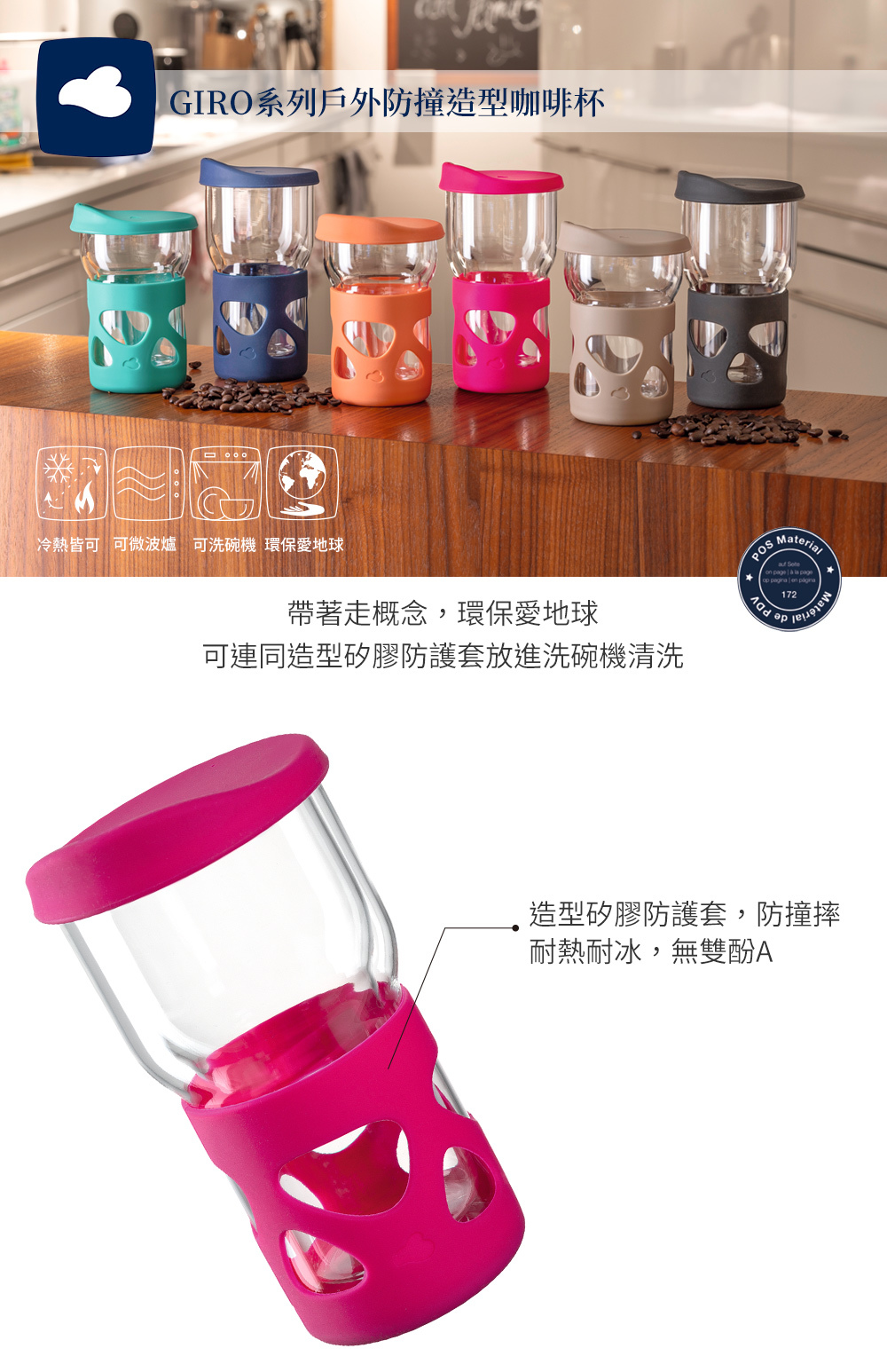 內容物:GIRO系列隨身玻璃咖啡杯460ml(含杯蓋/防撞矽膠保護套)(3色可選)