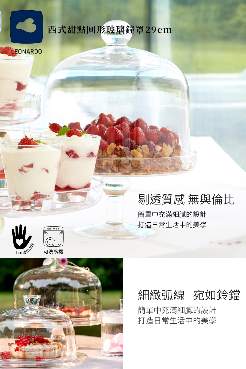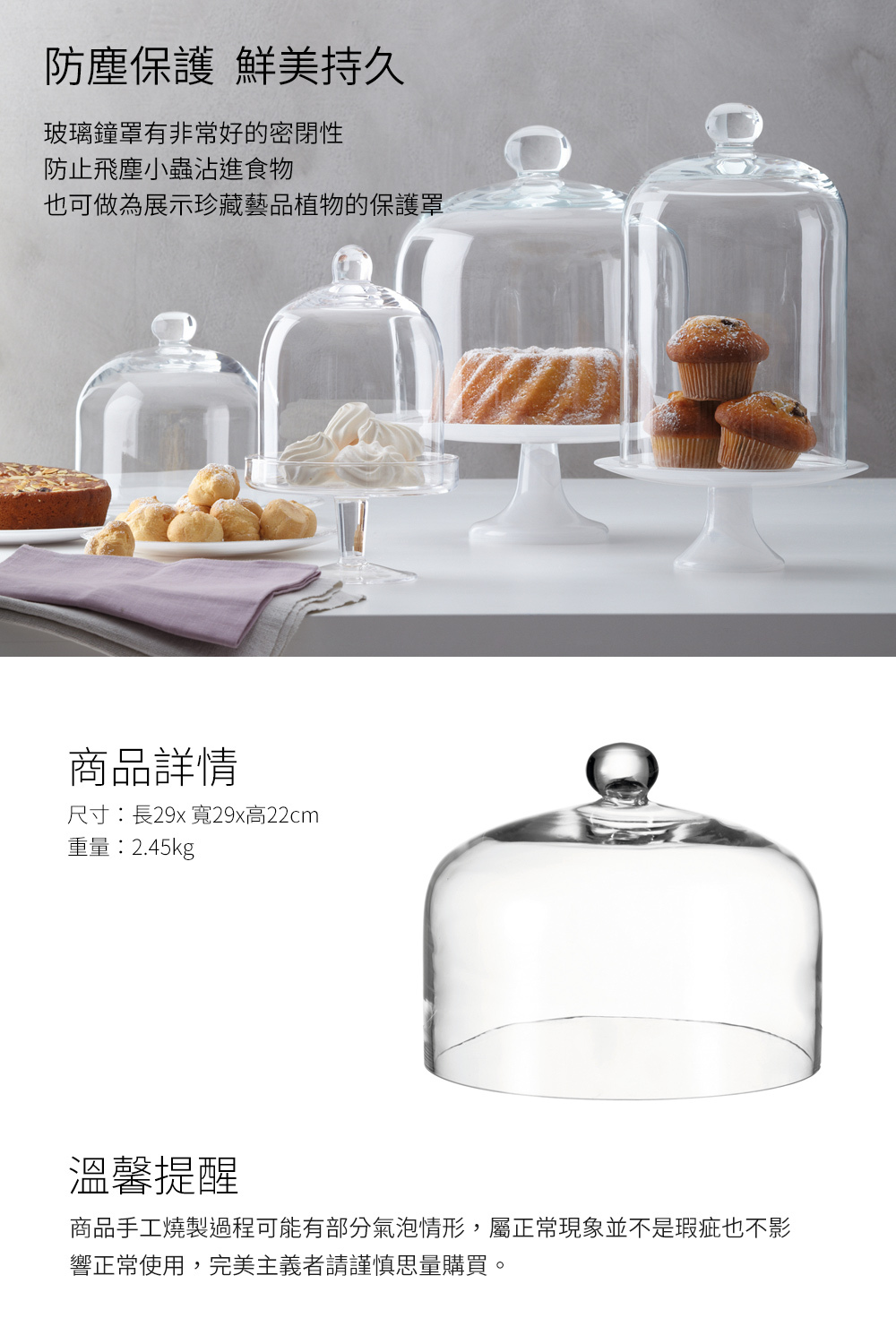 品名:西式甜點圓形玻璃鐘罩29cm