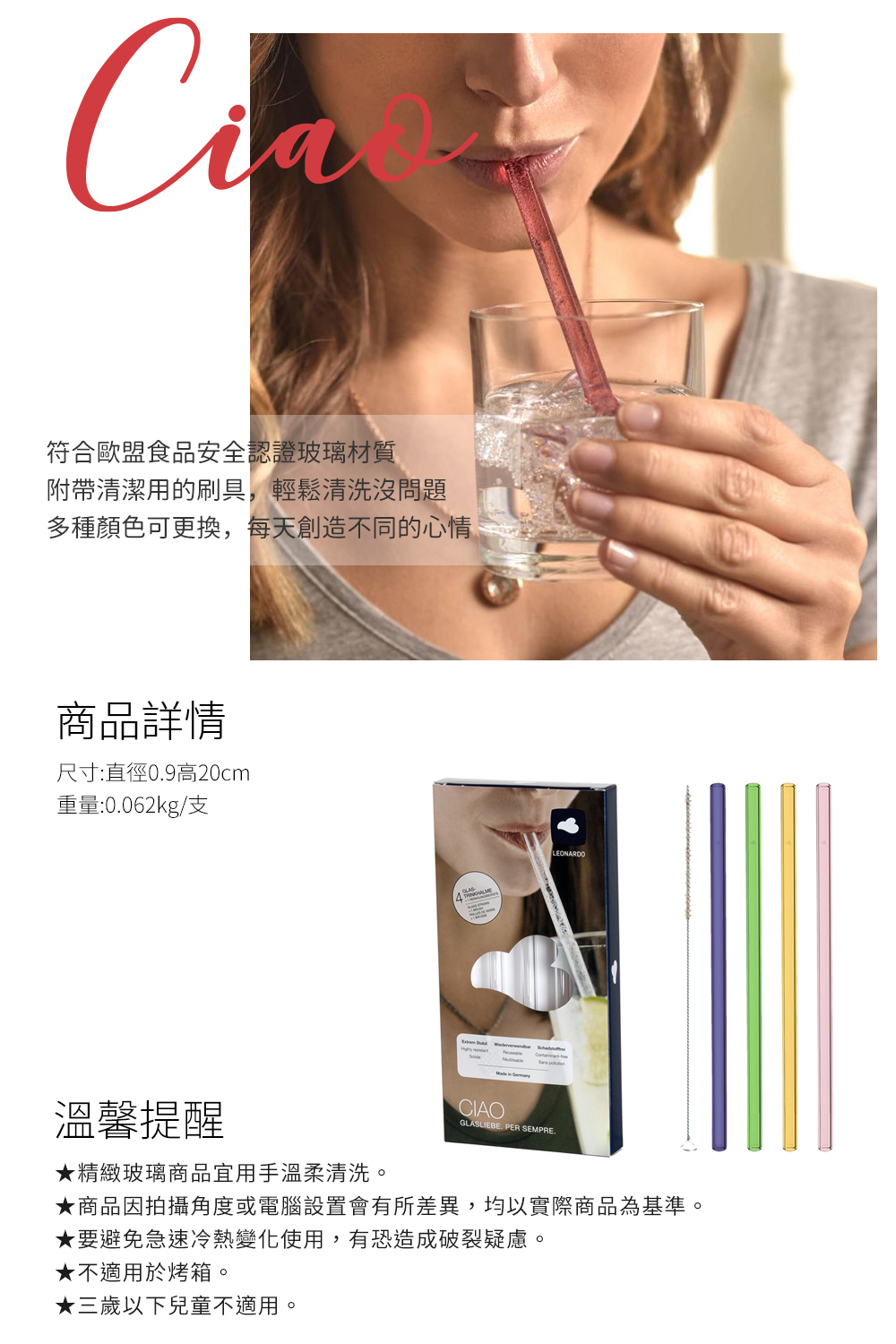 這款玻璃吸管採用耐用的硼矽酸鹽玻璃製成, 可輕鬆放入洗碗機清洗。使用實用的清潔刷, 頑固污垢即可輕鬆溶解。