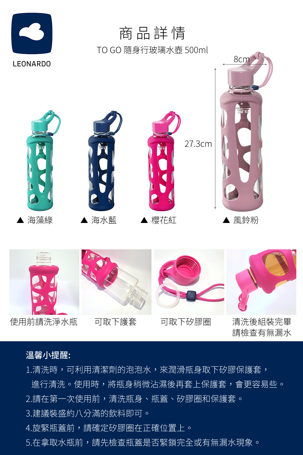 內容物:NEW GIRO系列隨身玻璃水瓶500ml(水壺/旋蓋/有提把/防撞矽膠保護套)