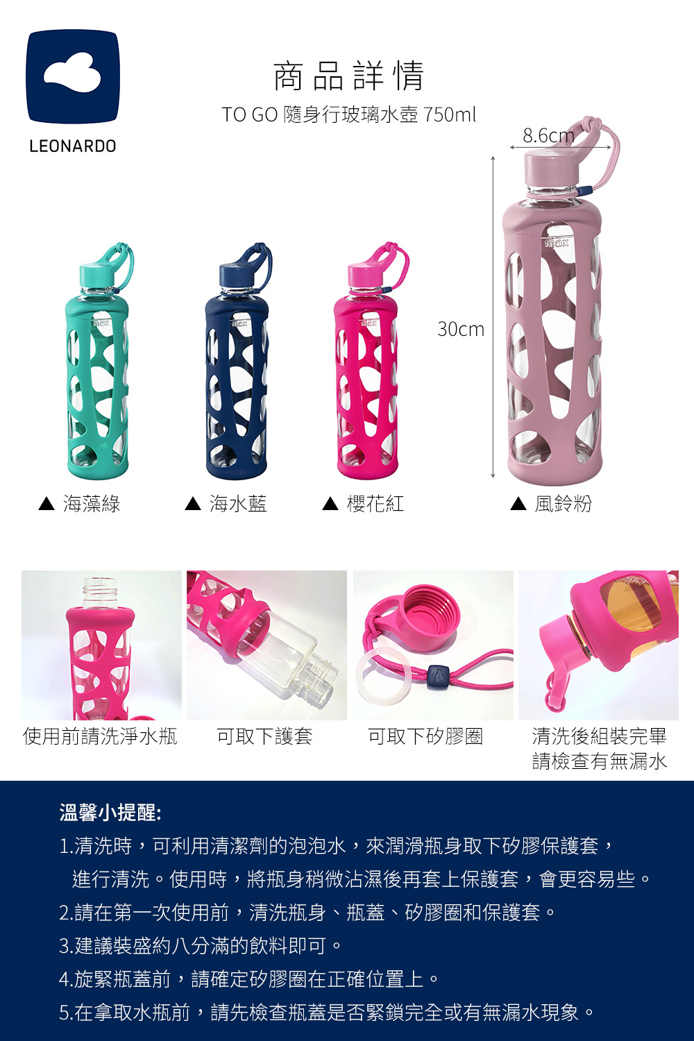 內容物:NEW GIRO系列隨身玻璃水瓶750ml(水壺/旋蓋/有提把/防撞矽膠保護套)
