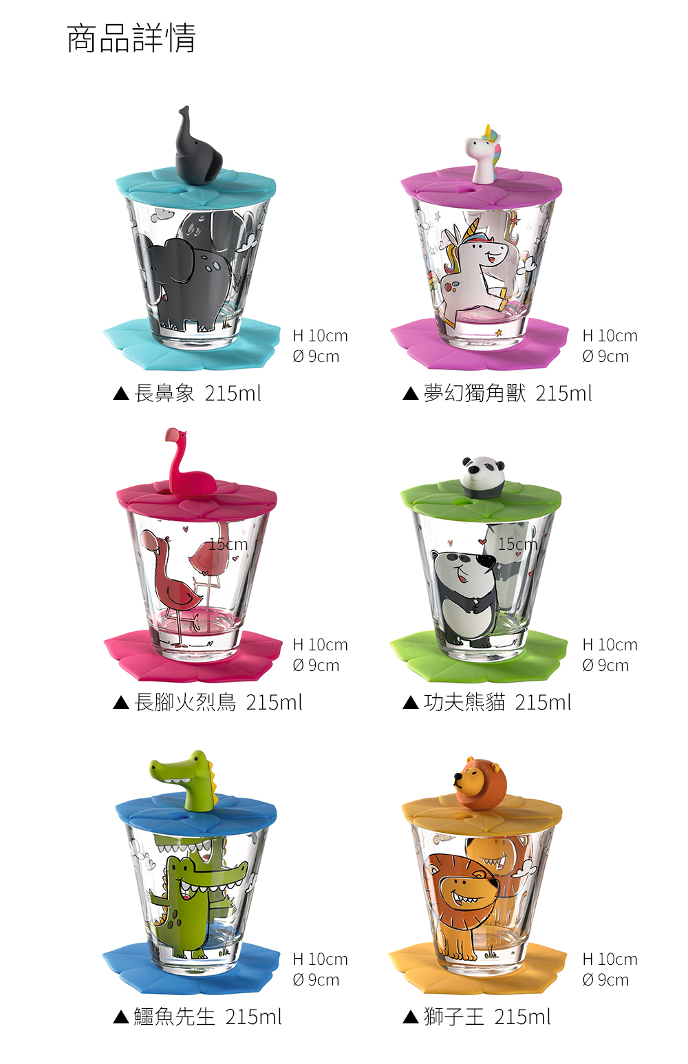 內容物:動物造型兒童玻璃杯210ml(含杯蓋.不含吸管)